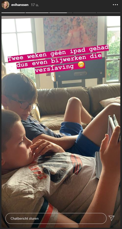 De afgelopen twee weken zaten Mac en Scout zonder iPad, één keer raden wat er gebeurde toen zij hun favoriete toestel weer in handen kregen. “Twee weken géén ipad gehad, dus even bijwerken dus verslaving”, lacht Evi Hanssen op Instagram.